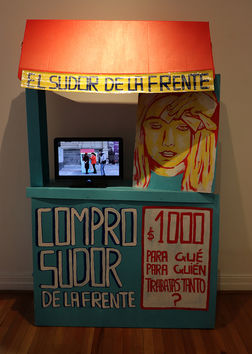 Las honorarias, dupla conformada por Roery Herrera y Loreto Muñoz, interpela directamente al sistema artístico y su precarización laboral. Es muy común que espacios e instituciones ofrezcan visibilidad como “paga” por exponer, frente a este escenario adverso las honorarias han ideado distintas estrategias que les permiten cuestionar esa realidad. Con ironía y resignación insisten en la importancia del trabajo. En esta ocasión y pensando en el concepto curatorial “Ocupar el flujo” decidieron salir a la plaza y preguntarle a lxs transeúntes: ¿En qué trabajas, por cuánto tiempo? ¿Por qué trabajas tanto, qué ambicionas? ¿Qué esperas lograr? a cambio de recolectar el sudor de su frente. Por esta acción había un pago de $1000. Esto abre múltiples aristas, algunas de ellas son:
