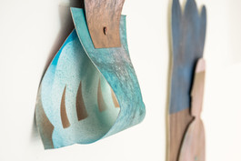 La palabra Tríptico remite a la tradición de la pintura, específicamente a obras que se componen de tres paneles que se unen por bisagras. Estas permiten la movilidad de las partes y así el tríptico puede cerrarse o abrirse. Que esta exposición tenga como título dicha palabra es un modo de declarar que la muestra tiene tres partes y que nosotras somos las bisagras que las articulan, mientras que Espacio218 es el todo. Elisa Alcalde, Daniela Díaz y Carola Josefa son quienes conforman este Tríptico, en el que cada parte es autónoma.